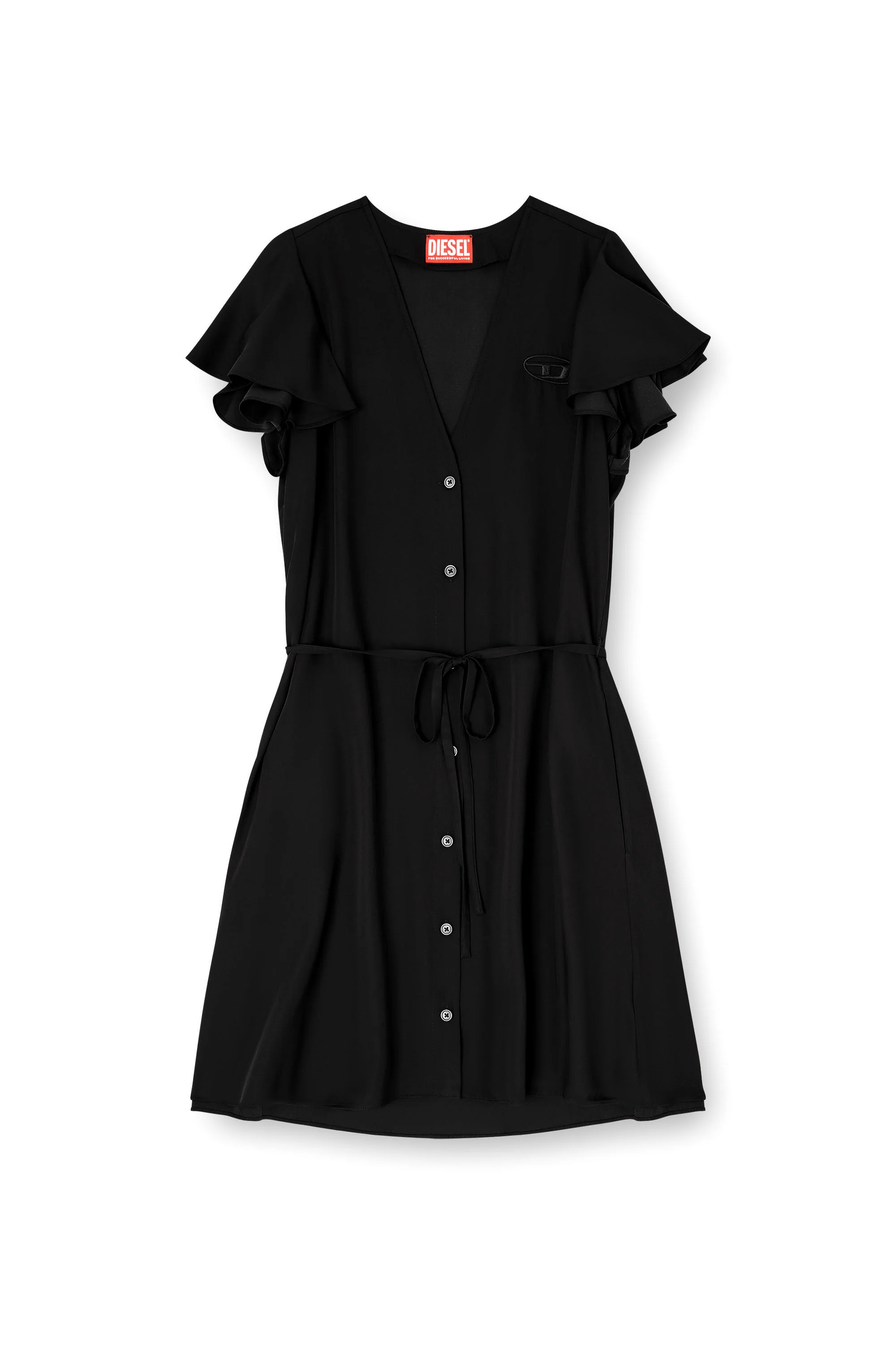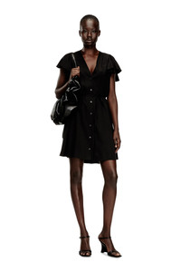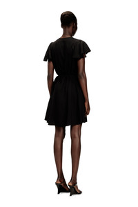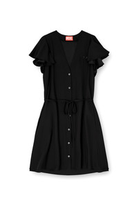 Product Description Satin dress with V-neck and short flutter sleeves, made of a fluid cupro blend. The design features a short skirt, with a button closure along the body and a thin belt that highlights the waist. It offers a fluid and comfortable silhouette, enhanced by signature details such as the tonal logo on the chest. ID: A202500JMBP Size & Fit Model is wearing an IT size 40 and is 175 cm / 5'7'' Check the size chart to choose the correct size. Materials & Details Composition: 65%Cupro 35%Lyocell V-neck Button closure Flutter sleeves Belted waist