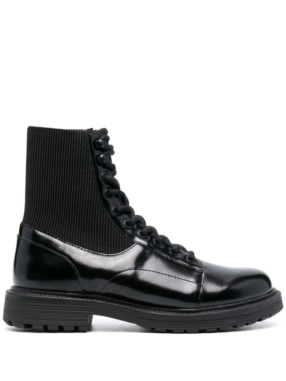 D-Alabhama panelled ankle boots black calf leather high-shine finish chunky rubber lug sole round toe panelled design front lace-up fastening elasticated ankles Imported Composition Leather 100% SIZE & FIT Measurement HEEL 1.57 in(4 cm) HEIGHT 6.29 in(16 cm) Sole height 0.78 in(2 cm)