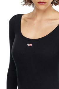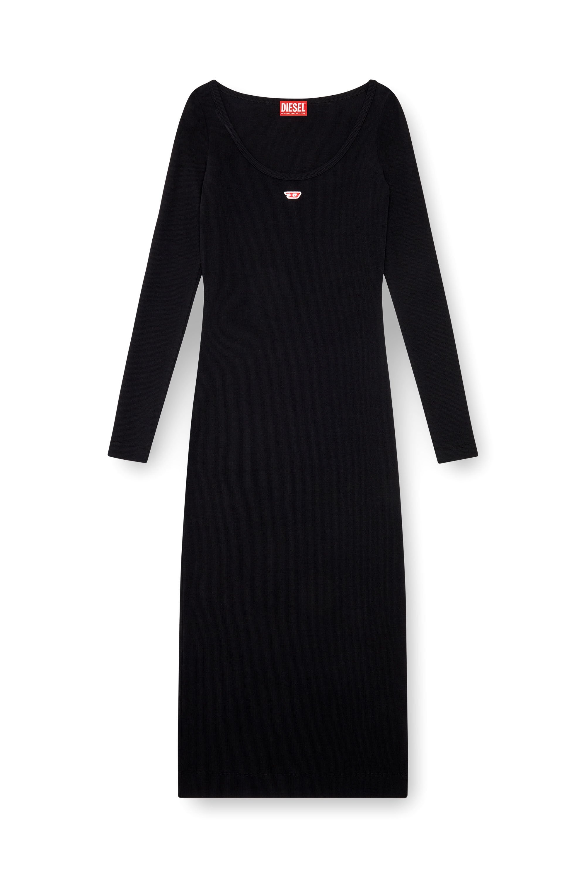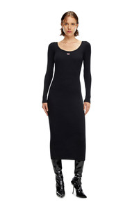 Product Description Women’s long-sleeve dress with a wide scoop neckline. Cut to a midi length, this body-hugging style is made from soft ribbed stretch jersey using organic cotton fibres and minimally detailed with an appliqued D logo patch. ID: A149600EJAI Size & Fit Model is wearing a size S and is 175 cm / 5'7'' Check the size chart to choose the correct size. Materials & Details Composition: 94%Cotton 6%Elastane-Spandex Slim fit