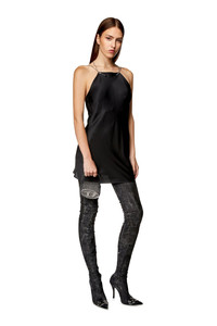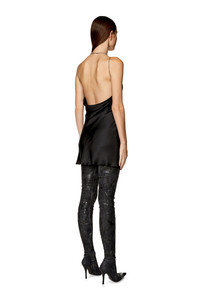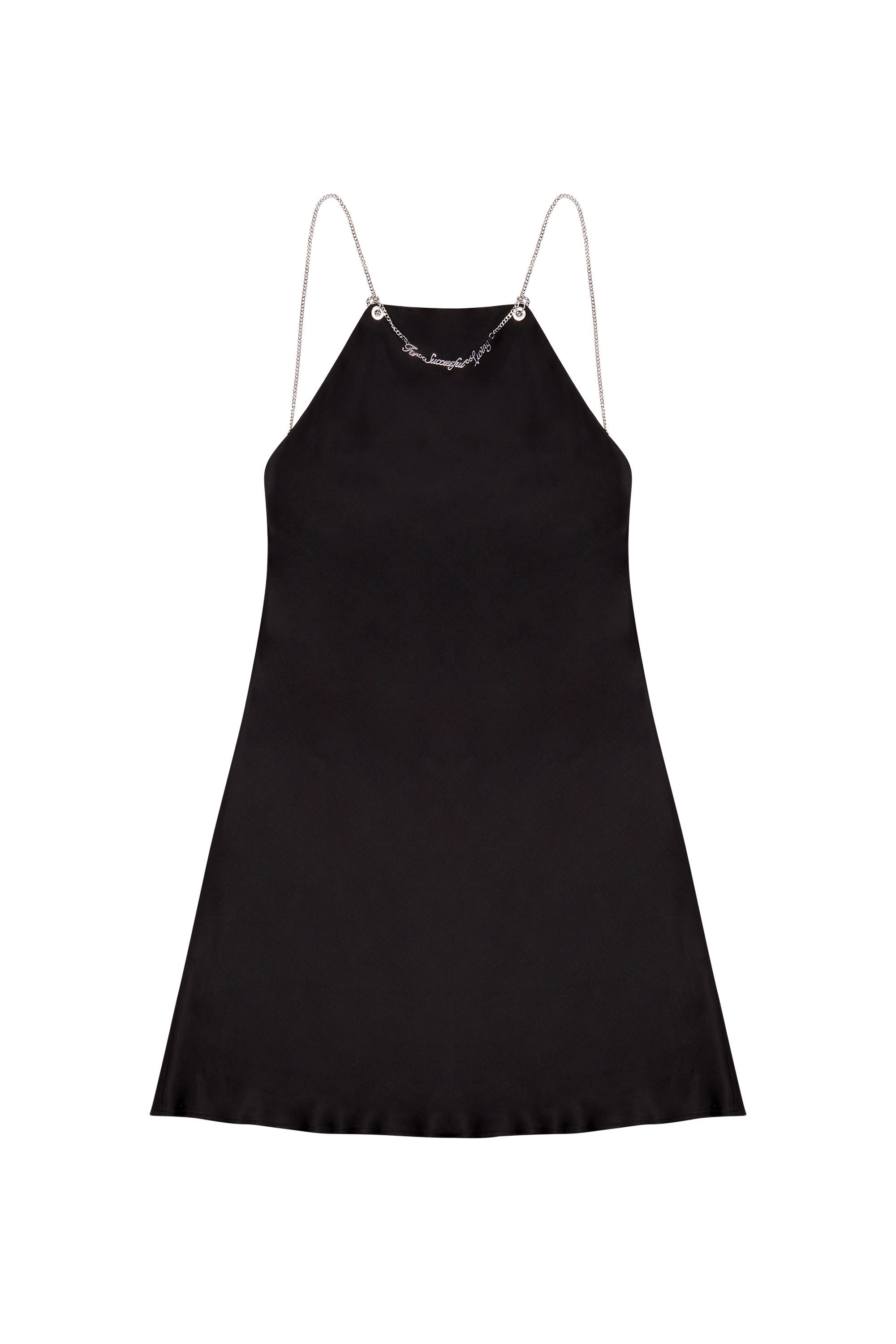 Model is wearing an IT size 40 and is 175 cm / 5'7'' Fits true to size, take your normal size. This regular-fit mini dress is cut from black viscose satin, flaunting a low draped back. Secured with delicate chain straps with an adjustable fastener at the back, this fluid style features a front necklace detail with 'For Successful Living' lettering.