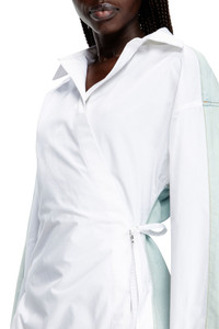 Product Description Women's shirt dress featuring a wrap construction. The compact cotton poplin front and denim back panels meet along the side seams, and the silhouette can be cinched via ties. Note the metal Oval D charm decorating the waist. ID: A173870CBCP Size & Fit Model is wearing an IT size 40 and is 175 cm / 5'7'' Check the size chart to choose the correct size. Materials & Details Composition: 100%Cotton Regular fit Tie fastening Unlined