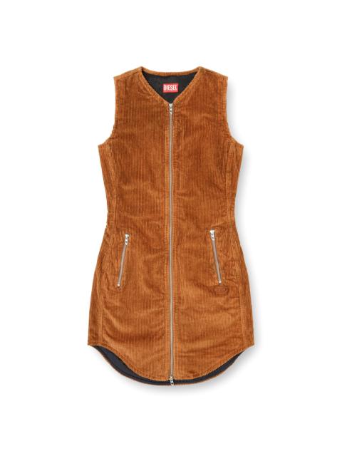 Product Description Sleeveless mini dress made of slightly stretchy cotton with a V-neckline. It features a worn effect and is lined internally for total comfort. It is characterized by a rounded lower hem and a central opening with a metal zipper and D-puller, which are also present on the front pockets. It is completed by a tone-on-tone embroidered Oval D logo below the left front pocket. ID: A185850WFCI Size & Fit Model is wearing an IT size 40 and is 175 cm / 5'7'' Check the size chart to choose the correct size. Materials & Details Composition: 99%Cotton 1%Elastane-Spandex V-neck Sleeveless Rounded hem Front zip pockets Oval D logo