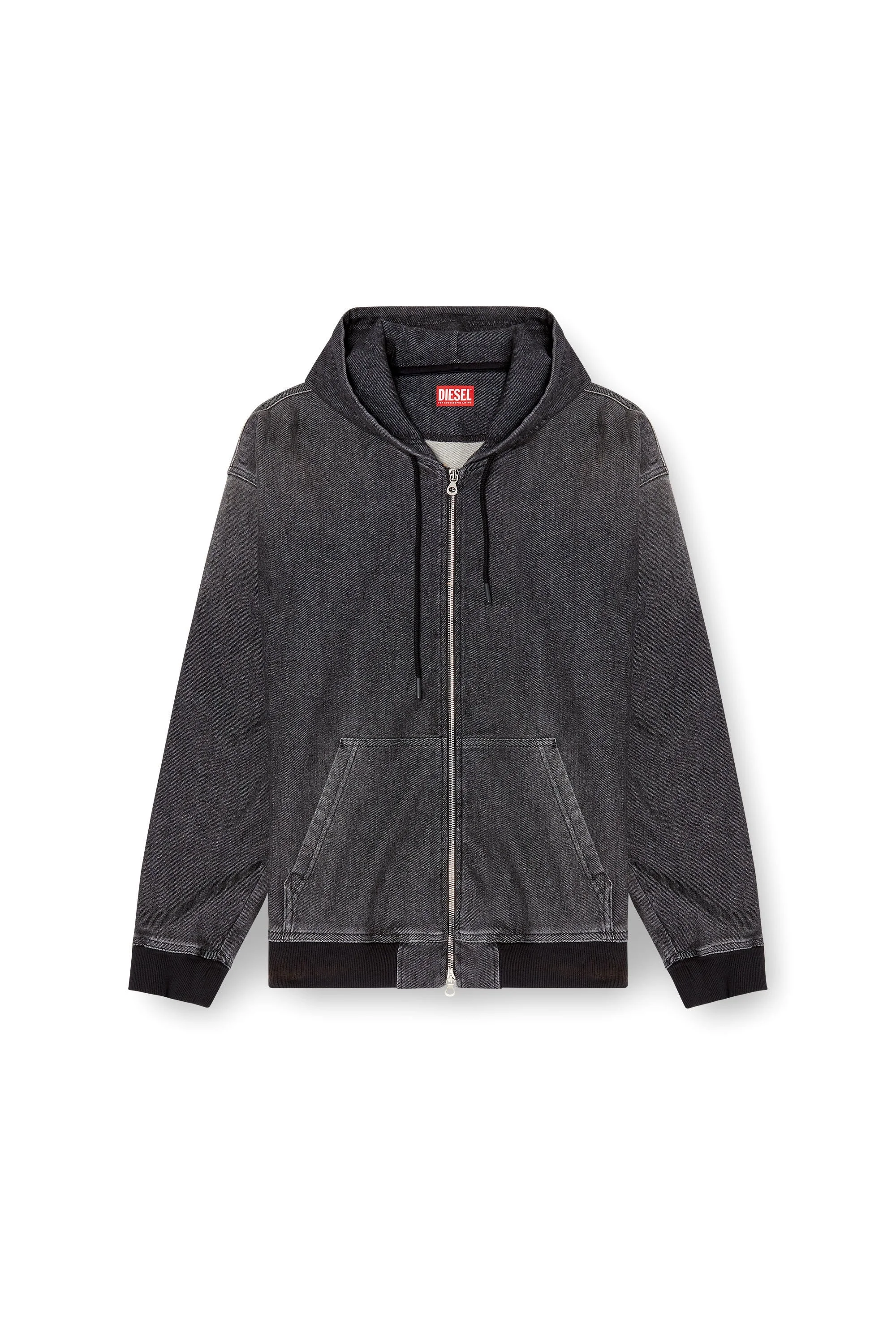 Product Description Zip-up sweatshirt made from Track Denim to express a cool, genderless attitude that nods to authentic street culture and 90s silhouettes. The hooded style is detailed with ribbed trims, a full-length zip closure with logo puller, and pouch pockets. This clean black wash is elevated by hand-sanded effects and dirt details for a subtle, naturally used look. ID: A1636709L77 Size & Fit Model is wearing a size L and is 188 cm / 6'2". Model is wearing a size S and is 177 cm / 5'9". Materials & Details Composition: 84%Cotton 10%Polyester 3%Elastomultiester 3%Elastane-Spandex, Rib 97%Cotton 3%Elastane-Spandex Hood Ribbed trims Pouch pockets
