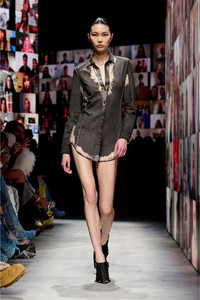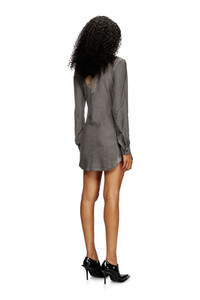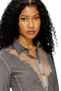 Product Description Diesel pushes the limits of fabrics and conventions, stripping a layer of fibres to reveal what lies underneath. Anchored in alternative tailoring, this FALL WINTER 24 RUNWAY SHOW women's minidress has a slim shirt silhouette made from grey devore jersey – the carefully engineered burnout transparencies are inspired by intense body heat, as if sweat left a permanent mark. ID: A171250CLBZ Size & Fit Model is wearing a size S and is 175 cm / 5'7'' Check the size chart to choose the correct size. Materials & Details Composition: 83%Cotton 13%Polyester 4%Elastane-Spandex Fall Winter 2024 Runway Show Slim fit Button cuffs and closure