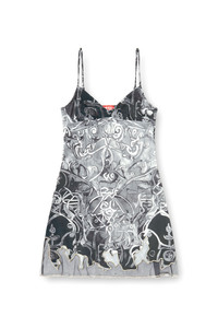 Product Description Recycled nylon mini dress, flaunting a wallpaper-style print riffing off medieval artwork. A see-through tulle inlay cuts into its slim silhouette with a doodled line, edged with cord embroidery. Finished with a metal Oval D on the back. ID: A192710BJBT Size & Fit Model is wearing a size S and is 175 cm / 5'7'' Check the size chart to choose the correct size. Materials & Details Composition: 77%Polyamide-Nylon 23%Elastane-Spandex, Contrast 100%Polyamide-Nylon Slim fit Adjustable straps