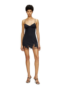 Product Description Featuring spaghetti straps and a gathered bust, this mini dress is cut for a slim fit in black recycled nylon. A see-through tulle inlay creates a squiggly hem, traced with tonal cord embroidery. Hallmarked with a metal Oval D on the back. ID: A196110NKCV Size & Fit Model is wearing a size S and is 175 cm / 5'7'' Check the size chart to choose the correct size. Materials & Details Composition: 77%Polyamide-Nylon 23%Elastane-Spandex, Contrast 100%Polyamide-Nylon Slim fit Adjustable straps