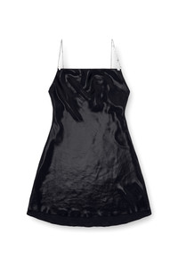 Product Description This women’s short slip dress is cut on the bias, ensuring a fluid drape. It’s made from laminated fabric with a shiny metallic finish and has a cowl neckline. Note the iconic For Successful Living motto embellishing one of the chain straps. ID: A143850QJAR Size & Fit Model is wearing an IT size 40 and is 175 cm / 5'7'' Check the size chart to choose the correct size. Materials & Details Composition: 100%Polyester, Application 100%Steel Regular fit Unlined