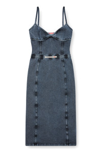 Product Description Sculpting the body with a slim panelled silhouette, this stretch jersey dress is treated and dyed to mimic the look of faded indigo denim. An elasticated waist cinches in the figure, embellished with a heat-transfer Diesel label. ID: A183580KIBY Size & Fit Model is wearing a size S and is 175 cm / 5'7'' Check the size chart to choose the correct size. Materials & Details Composition: 93%Cotton 7%Elastane-Spandex, Elastic 81%Cotton 11%Polyester 8%Elastane-Spandex Slim fit