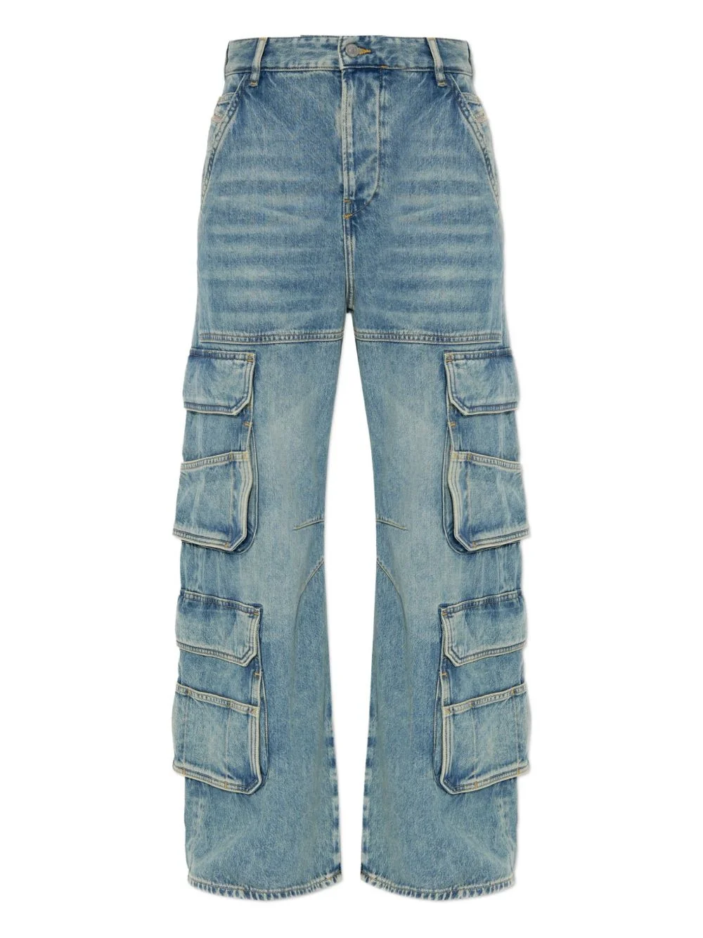 multi-pocket cargo jeans Highlights - Light blue - Cargo pockets - Cotton fabric - Straight leg - High waist - Button fly - Belt loops Imported Composition Cotton 100% Washing instructions Read Manufacturer Guidelines