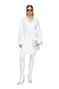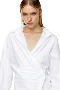 Model is wearing an IT size 40 and is 175 cm / 5'7'' Fits true to size, take your normal size. This women's wrap dress has a loose, shirt silhouette defined by the embossed Oval D – the tonal yet sizable logo embellishment doubles as a fastening. It's crafted from crisp stretch poplin blended with a percentage of organic cotton and falls to a mini length.