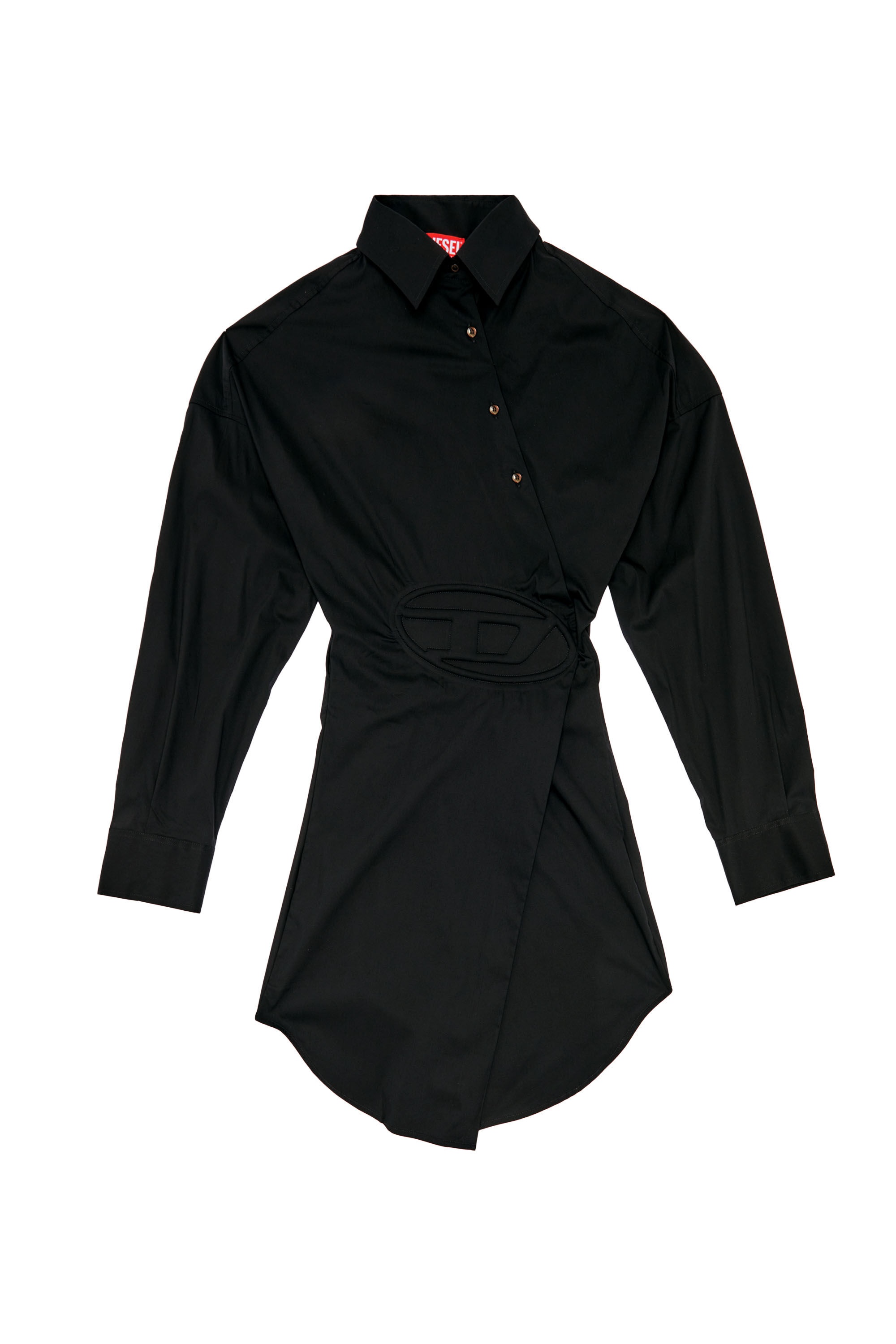 Model is wearing an IT size 40 and is 175 cm / 5'7'' Fits true to size, take your normal size. This women's wrap dress has a loose, shirt silhouette defined by the embossed Oval D – the tonal yet sizable logo embellishment doubles as a fastening. It's crafted from crisp stretch poplin blended with a percentage of organic cotton and falls to a mini length.