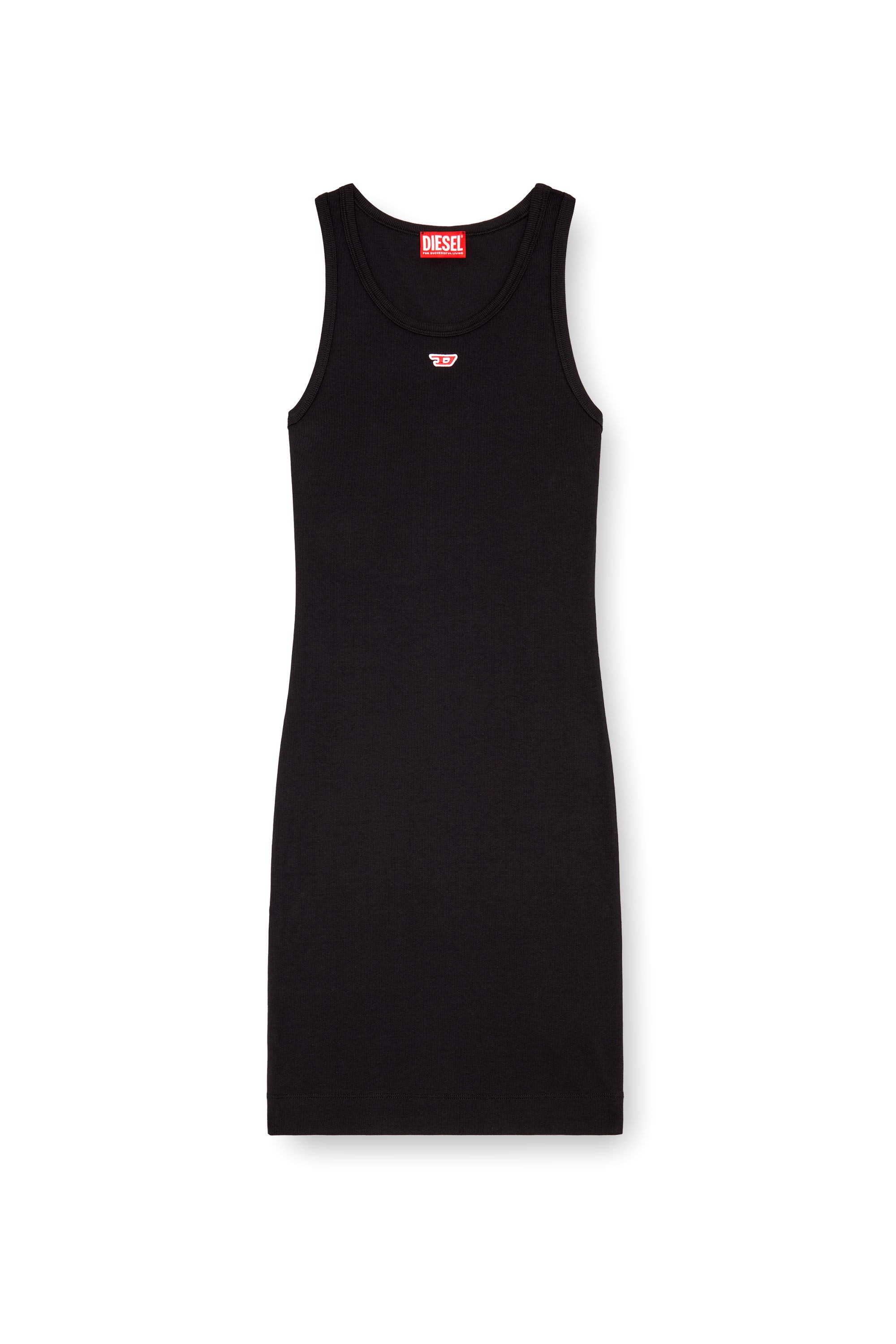 Product Description Women's short dress with a body-hugging tank silhouette. Crafted from a blend of organic cotton and stretch, this ribbed style has a clean, essential design and a red D logo patch on the front. ID: A150410EJAI Size & Fit Model is wearing a size S and is 175 cm / 5'7'' Check the size chart to choose the correct size. Materials & Details Composition: 94%Cotton 6%Elastane-Spandex Slim fit Unlined
