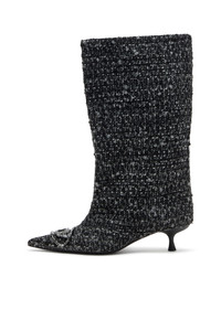Product Description These women’s knee boots are an exclusive FW25 Runway Show style made in Italy. Rendered in quintessentially chic boucle fabric, they feature a super-wide shaft, pointed toes and 4cm kitten heels. The Oval D hardware – an expression of Diesel’s identity – is perfectly camouflaged in with a matching finish: a seamless juxtaposition of reality and illusion. ID: Y03799P8662 Materials & Details Composition: 38%Polyester 36%Acrylic 14%Cotton 11%Wool 1%Other Fibres Fall Winter 2025 Runway Show 4cm kitten heel Made in Italy