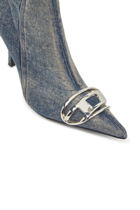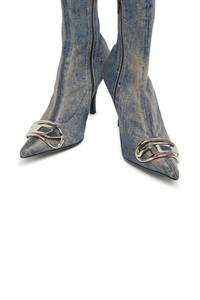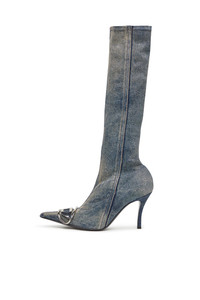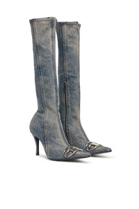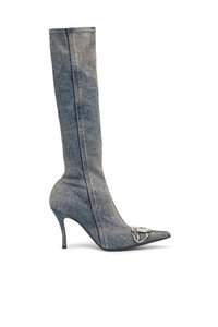 Product Description High boots with a sleek silhouette and heel, made from stretch denim and treated for a worn-in look. They feature a side zip closure for easy use. The metallic oval D logo on the front enhances the iconic character, while the heel is 8 cm high. ID: Y03366PR617 Materials & Details Composition: 97%Cotton 2%Elastomultiester 1%Elastane-Spandex Decorative plaque Heels Side zip closure