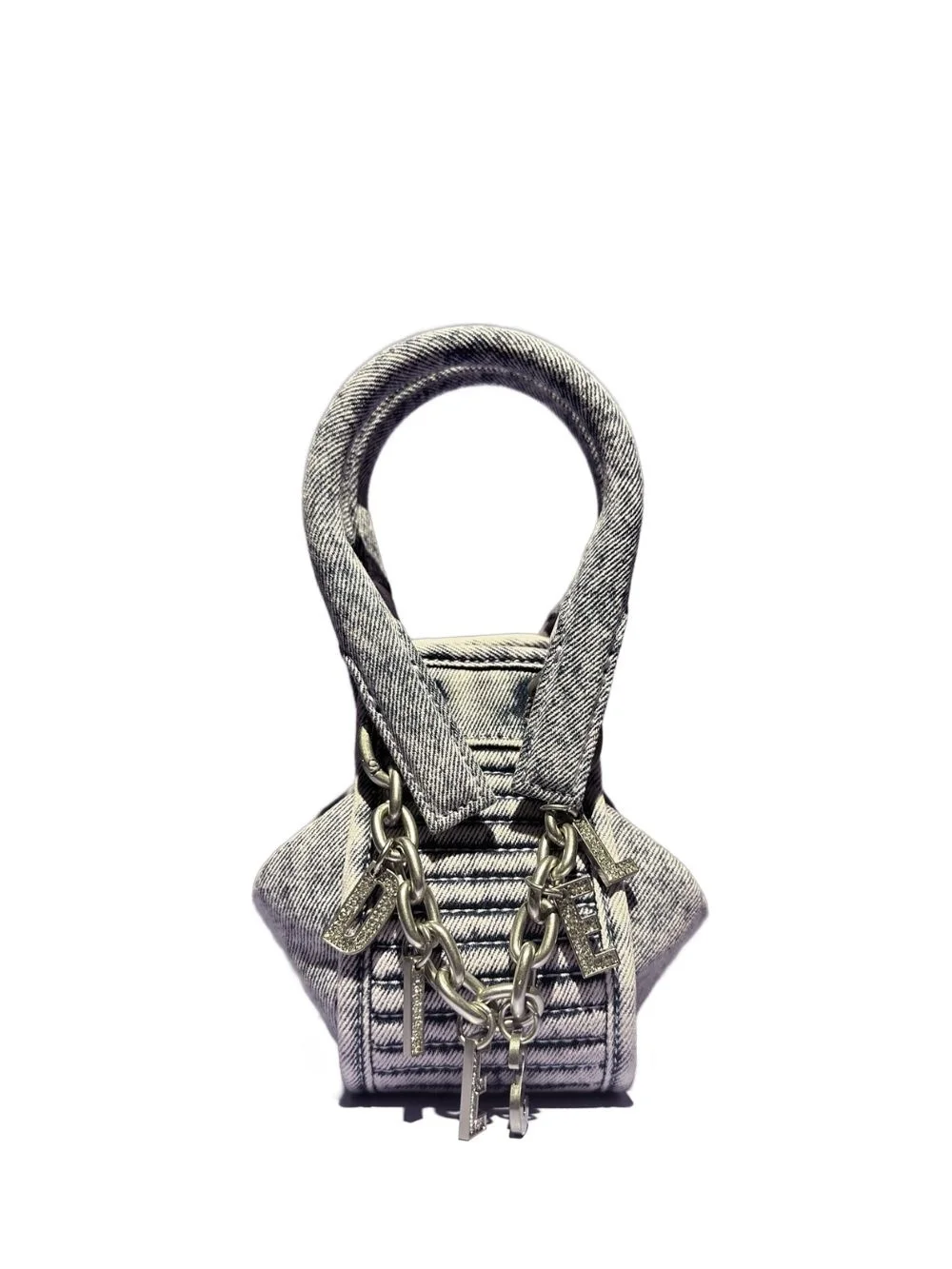 distressed mini bag Highlights - Light purple - Top zip fastening - Two rolled top handles - Adjustable detachable shoulder strap - Main compartment Imported Composition Outer: Cotton 90%, Leather 10% SIZE & FIT Measurement DEPTH 2.36 in(6 cm) HEIGHT 6.29 in(16 cm) WIDTH 7.87 in(20 cm)