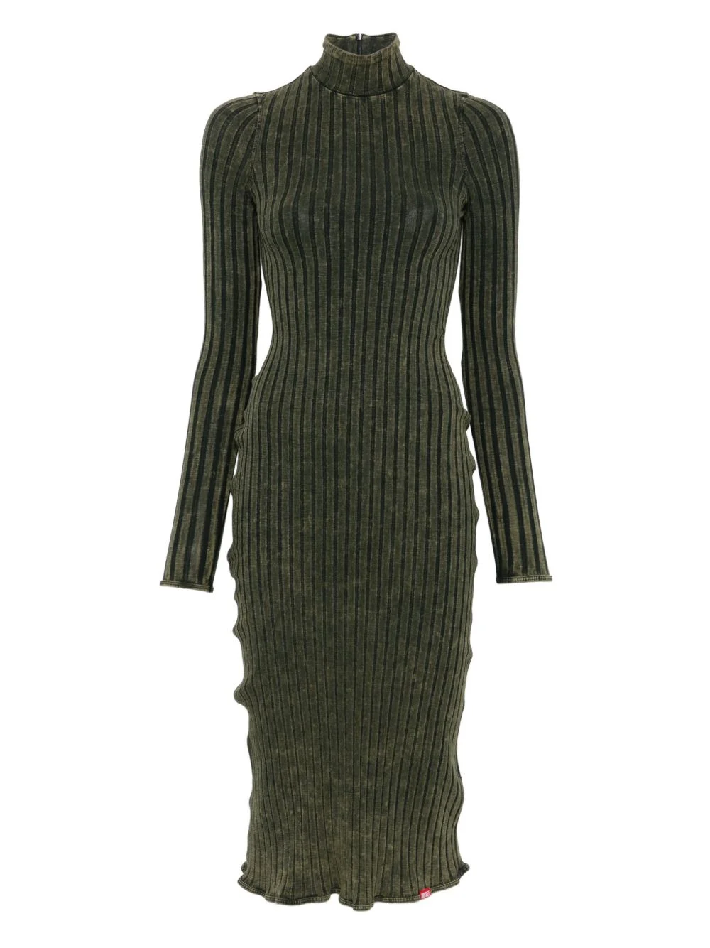 D-Wavya ribbed midi dress Highlights - Green - High neck - Zip fastening - Long sleeves Imported Composition Cotton 95%, Elastane 5% Washing instructions Machine Wash