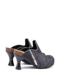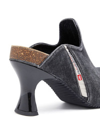 D-Woodstock W 80mm denim mules Designed for a Western-inspired look, Diesel's D-Woodstock mules boast a patchwork denim upper. They sit atop a sculpted high heel with a cork midsole and feature a signature logo tag at the side for a branded flair. Highlights - Black - Cotton - Denim - Patchwork design - Round toe - Branded insole - Cork midsole - High sculpted heel Imported Composition Cotton 100%