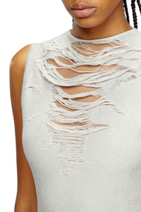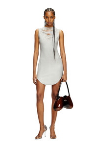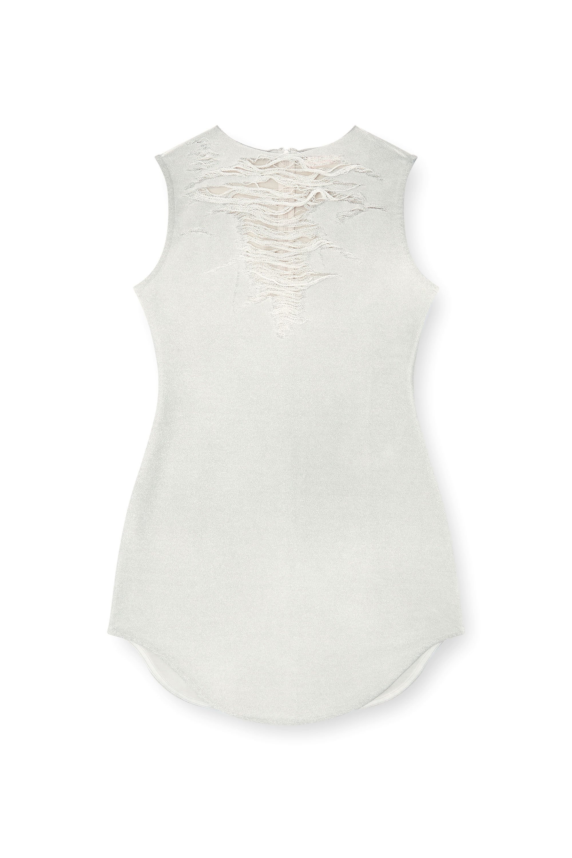 Product Description This SS25 Runway Show women's dress recontextualizes loopback jersey, the comfort fabric of every day, with tailored lines and high distressing techniques. What appears like erratic shredding at the neckline is a carefully engineered burnout devore. The treatment breaks the links between the coloured and transparent yarns making up the garment, creating the unique fringing against a sheer tulle-like base. This mini is finished with a light wash and worn inside out. ID: A189220PLAI Size & Fit Model is wearing a size S and is 175 cm / 5'7'' Check the size chart to choose the correct size. Materials & Details Composition: Outer 64%Cotton 34%Polyester 2%Elastane-Spandex, Inner 98%Polyester 2%Elastane-Spandex Spring Summer 2025 Runway Show Hidden back zip closure Curved hem Unlined