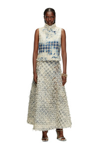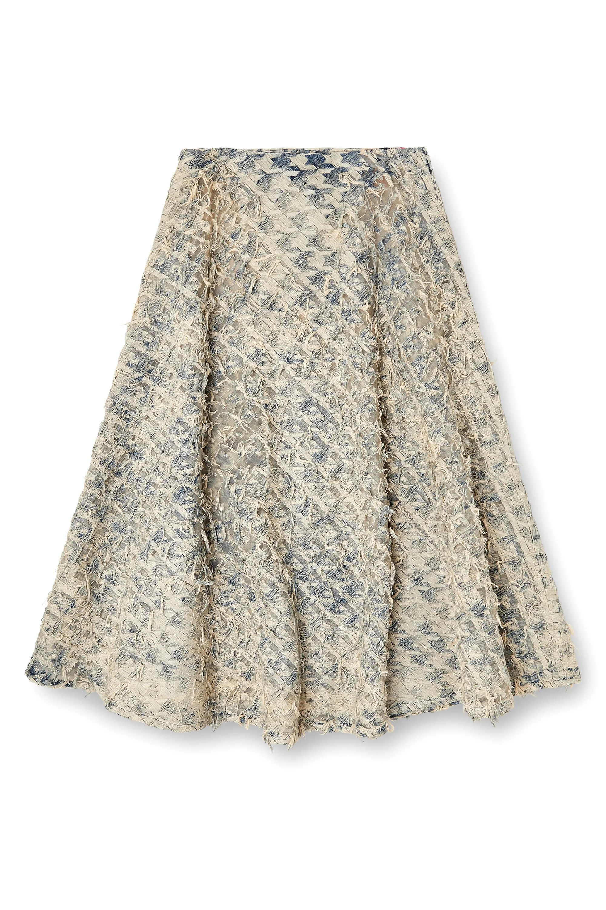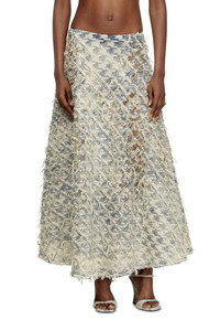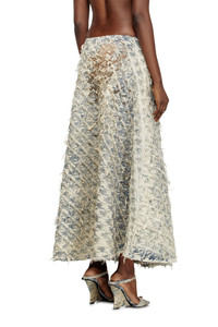 Product Description This maxi skirt features a low-cut curved waist and a full, flowing silhouette that channels a haute-couture feeling. Diesel's unique expertise in deconstructing denim lends this Fall Winter 25 Runway style an ethereal touch: the technical denim features a houndstooth jacquard weave, while the signature devore technique reveals the inner construction of the fabric. Floating threads add texture for an inside-out effect. ID: A20749007CC Size & Fit Model is wearing a size 26 and is 175 cm / 5'7'' Check the size chart to choose the correct size. Materials & Details Composition: 83%Cotton 17%Polyamide-Nylon, Contrast 78%Polyamide-Nylon 22%Elastane-Spandex, Elastic 80%Polyamide-Nylon 20%Elastane-Spandex Fall Winter 2025 Runway Show Hidden closure Unlined