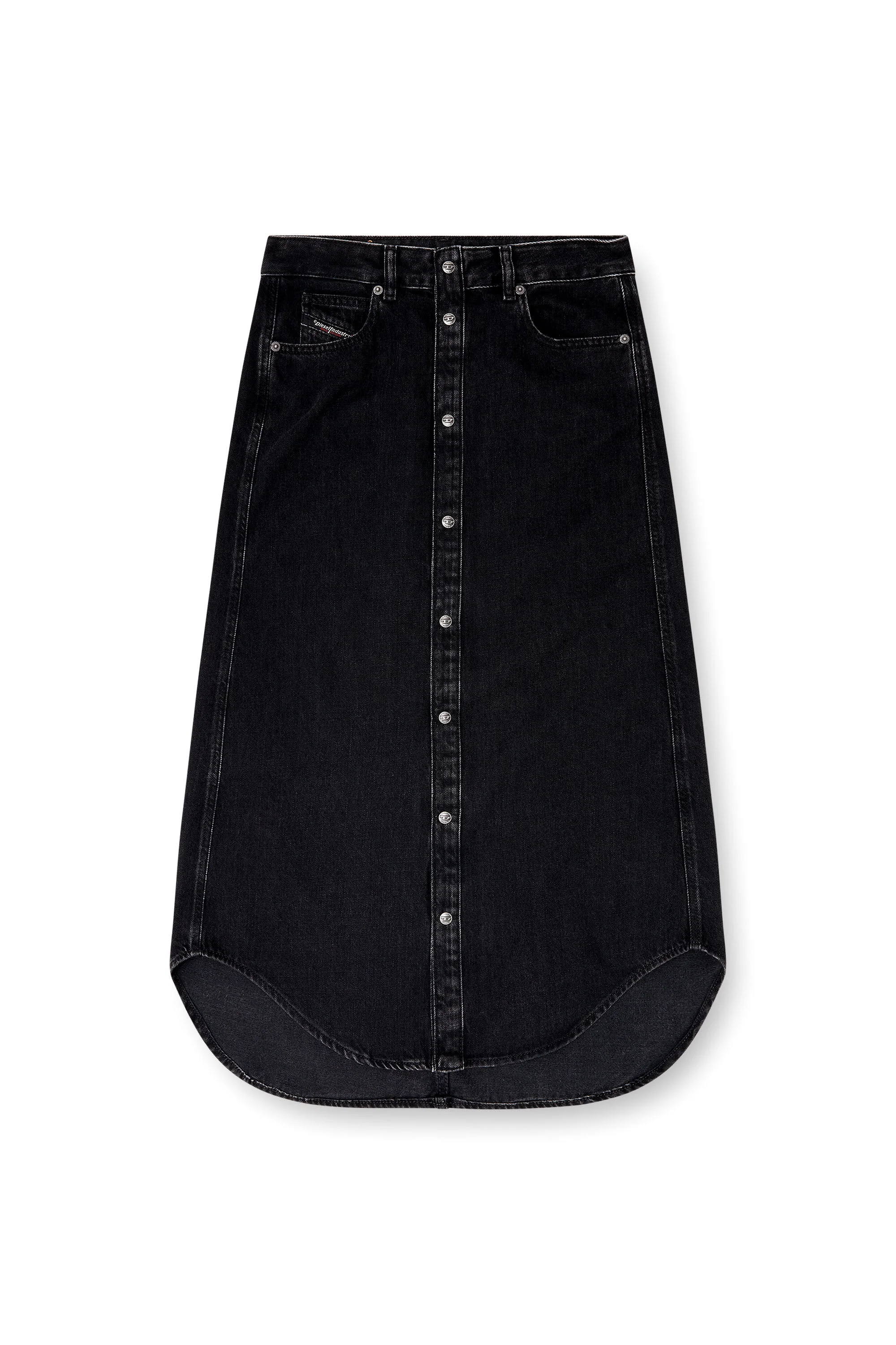 Product Description Midi cotton skirt with button closure along the entire length and a five-pocket design. The rounded hem, visible seams, and back patch complete the look with sophisticated details. ID: A18107068KE Size & Fit Model is wearing a size 26 and is 175 cm / 5'7'' Check the size chart to choose the correct size. Materials & Details Composition: 50%Cotton 50%Lyocell Regular fit Midi length Button closure 5-pocket design Rounded hem