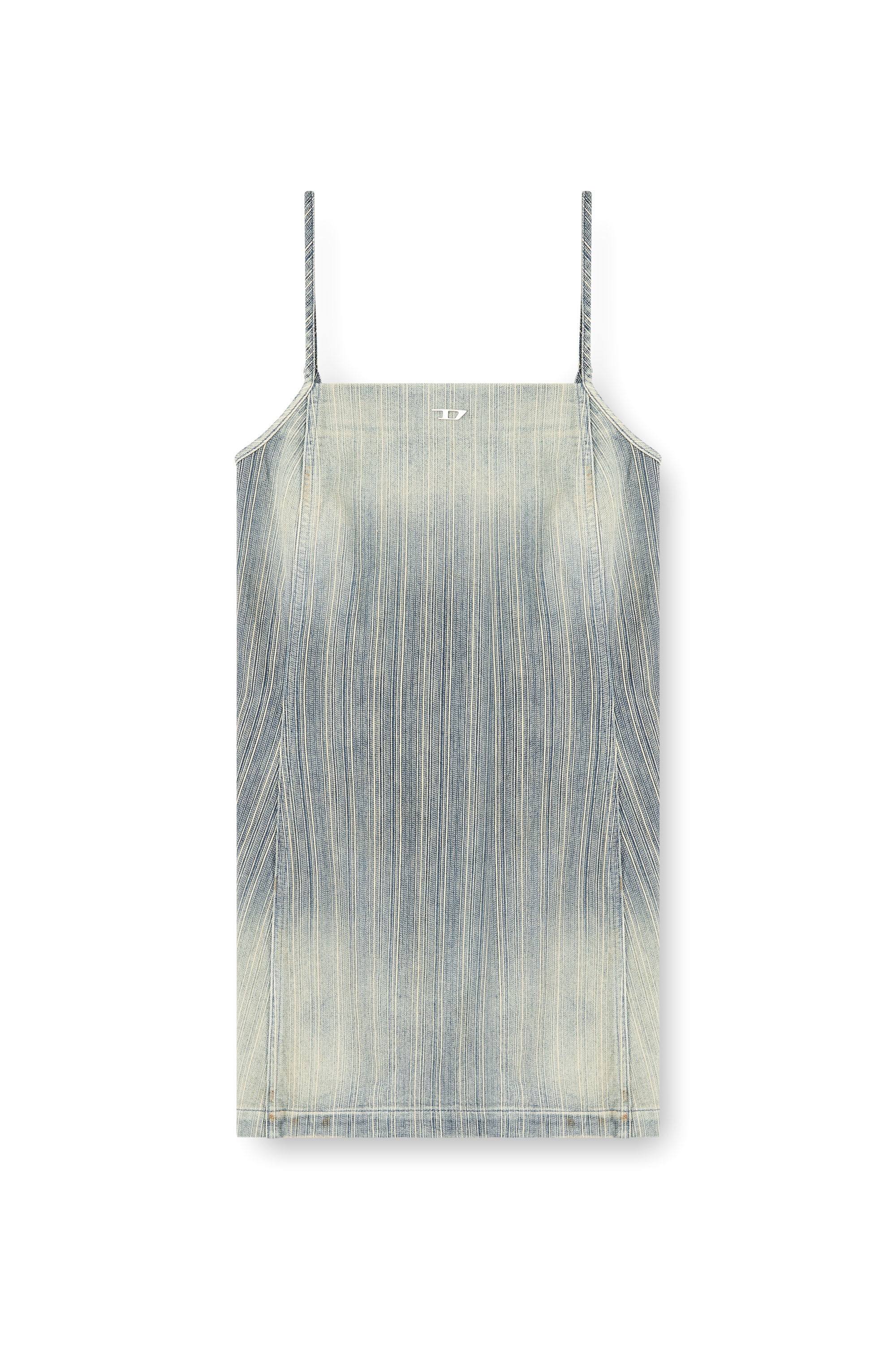 Product Description Women's mini dress featuring an essential, straight-cut silhouette with slim straps. Detailed with a metal D on the front. This fix denim is defined by a particular weave of white and indigo yarns creating an irregular striped pattern. The different width of the stripes adds a point of interest, while the stonewashed and hand-sanded treatments lend a tactile, used look and feel. Meticulously designed dirt effects and handmade abrasions add depth and colour to the style. ID: A1710609L55 Size & Fit Model is wearing a size S and is 175 cm / 5'7'' Check the size chart to choose the correct size. Materials & Details Composition: 100%Cotton Adjustable shoulder straps Hidden zip closure Unlined