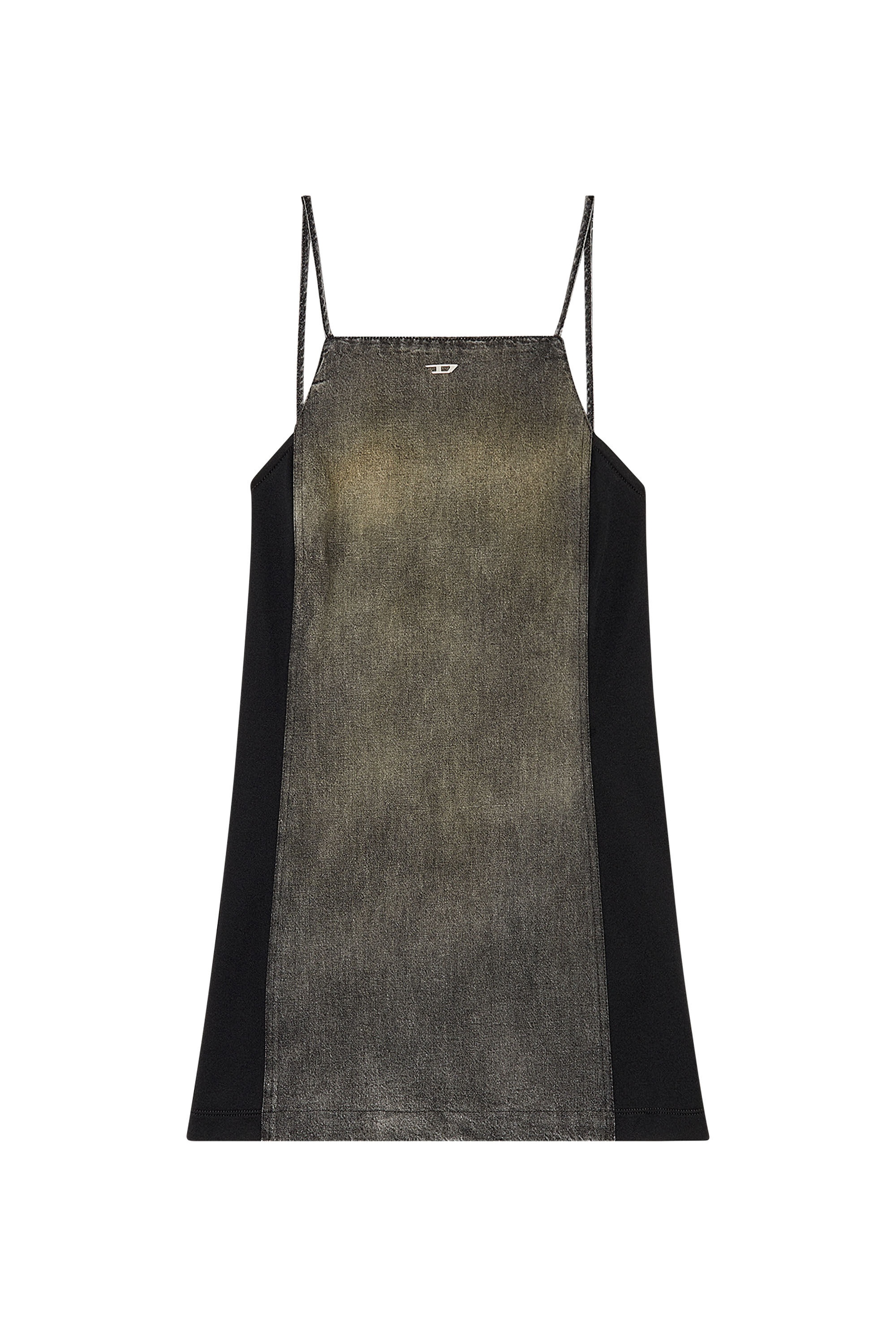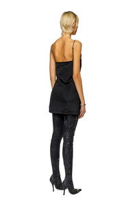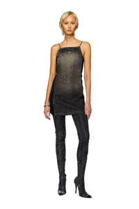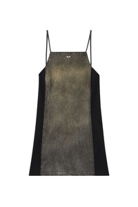 Product Description Women's mini dress with a halterneck silhouette and metal Oval D logo on the front. The back panel in tonal stretch fabric ensures a comfortable fit. It's crafted from fix denim made from cotton and hemp in a nuanced black wash. ID: A130450JGAN Size & Fit Model is wearing a size S and is 175 cm / 5'7'' Check the size chart to choose the correct size. Materials & Details Composition: Front 80%Cotton 20%True Hemp, Back 100%Polyester Slip-on Adjustable shoulder straps Unlined