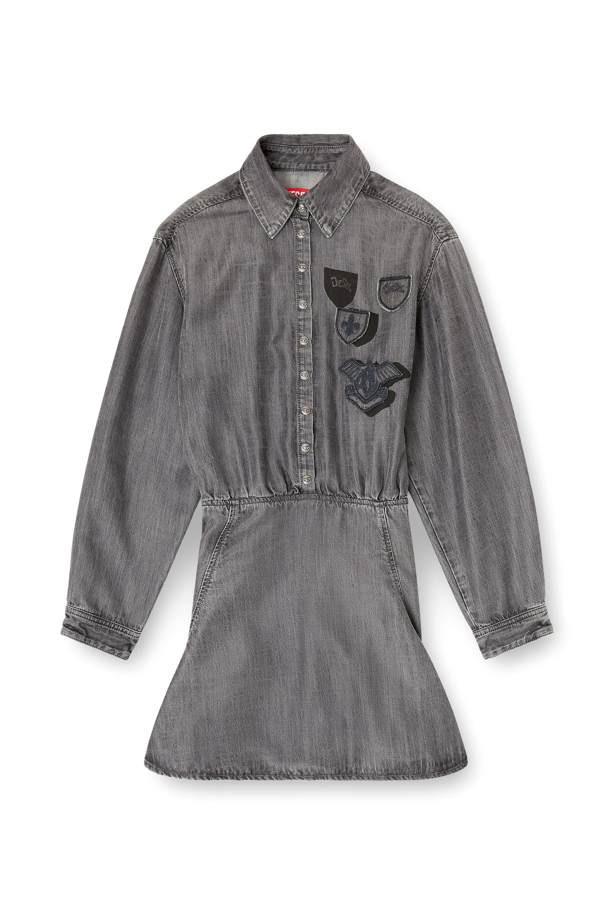 Product Description This mini dress is crafted from black Lyocell denim with a light, fluid texture. The special wash technique lends the fabric bold shaded effects, while the embroidered patches on the chest makes it a unique statement piece. ID: A23669068XQ Size & Fit Model is wearing a size S and is 175 cm / 5'7'' Check the size chart to choose the correct size. Materials & Details Composition: 100%Lyocell Shirt collar Buttoned top Unlined