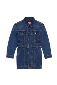 Model is wearing a size S and is 175 cm / 5'7'' Fits true to size, take your normal size. Trucker coat. This belted style is adorned with an embroidered D logo and features a curved pocket construction from the Diesel archives. This dark blue wash is crafted from fix denim and enriched with subtle treatments.