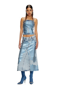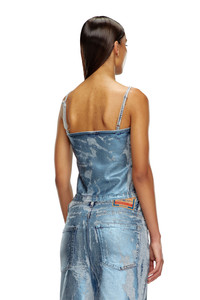 Product Description This women's top features thin shoulder straps and a close-fitting silhouette. Crafted from comfort denim, this eye-catching wash features a shiny pop-colour touch. The fabric is treated with dedicated artwork that recreates Diesel's heritage whiskers and used effects, then pressed with a sheet of Mylar foil and overdyed to enhance the high-octane vintage look. ID: A149910AJEU Size & Fit Model is wearing a size S and is 175 cm / 5'7'' Check the size chart to choose the correct size. Materials & Details Composition: 99%Cotton 1%Elastane-Spandex Hidden side zip closure