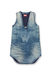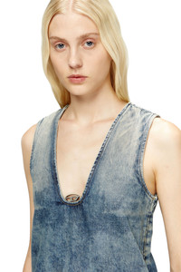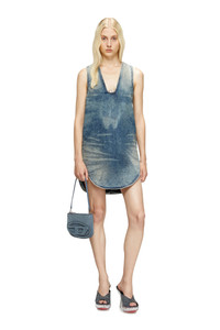 Product Description Channelling a retro, tennis-inspired silhouette, this short dress is cut to a comfortable fit. it features a deep V neckline highlighted by a metal Oval D nestled at the bottom, and a sporty curved hem, which is one of Diesel's seasonal signatures. Made using a percentage of organic cotton, this medium blue wash is detailed with special laser technology to create the intricate artwork of whiskers and worn areas. A final stonewash treatment lends a unique, '80s-inspired marbled finish. ID: A1903109M96 Size & Fit Model is wearing a size S and is 175 cm / 5'7'' Check the size chart to choose the correct size. Materials & Details Composition: 100%Cotton Hidden zip closure Lined