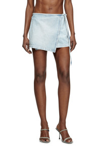 Product Description This women's miniskirt features a wrapover silhouette that can be styled to sit low or high on the waist according to how you adjust the belt. Part of Diesel's DNA selection, showcasing the brand's heritage and essential style codes, this light blue fix denim features a herringbone pattern that creates a subtle striped effect. The bleach-effect marbled wash is enriched by handmade abrasions and dirt hues for a natural, lived-in look. ID: A1711009L60 Size & Fit Model is wearing a size S and is 175 cm / 5'7'' Check the size chart to choose the correct size. Materials & Details Composition: 100%Cotton Self-tie closure