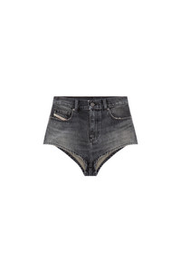 Product Description These women's shorts are cut to a slim-fitting silhouette with a high waist. The front pockets nod to classic jeans, while the back has minimal detailing. The style is crafted from fix denim with a treated black wash, featuring a dusty, lived-in look. ID: A035570DQAH Size & Fit Model is wearing a size 26 and is 175 cm / 5'7'' Check the size chart to choose the correct size. Materials & Details Composition: 100%Cotton 3 pockets Button and zip fly