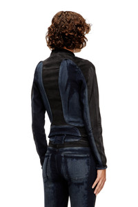 Product Description Inspired by sporty moto styles, this women's jacket features an essential, clean-cut silhouette, branded with D-shaped zip pullers. Inspired by Diesel’s heritage and continuous innovation, this bicolour wash channels a bold biker aesthetic. Crafted from super stretch denim in organic cotton, it combines two contrasting washes – dark blue and black – that enhance the construction of the garment. Lasered whiskers with a striking negative effect, and a total fade black treatment achieve an authentic worn-in effect. ID: A1843709M92 Size & Fit Model is wearing a size S and is 175 cm / 5'7'' Check the size chart to choose the correct size. Materials & Details Composition: 97%Cotton 2%Elastomultiester 1%Elastane-Spandex Two-way zip closure Unlined