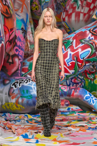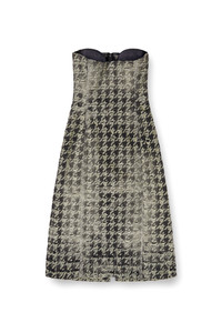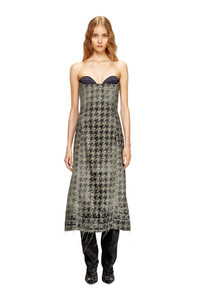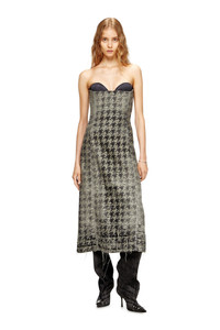 Product Description A key piece from the Fall Winter 25 Runway Show, this strapless midi dress borrows from sartorial silhouettes: the structured bodice is fitted with bustier-inspired cups, while the midi skirt features a deep back slit. This severe aesthetic is mixed with Diesel's DNA fabric – destroyed denim – transforming it into a contemporary piece with grit and character. Crafted from fix denim, the wash showcases bold contrasts in black and grey, forming a tactile houndstooth pattern. Laser techniques and burn effects enhance the worn-in texture and floating threads, making each piece one-of-a-kind – an expression of Diesel’s denim expertise and innovative spirit. ID: A213500CEBJ Size & Fit Model is wearing a size S and is 175 cm / 5'7'' Check the size chart to choose the correct size. Materials & Details Composition: 100%Cotton Fall Winter 2025 Runway Show Back zip closure Unlined