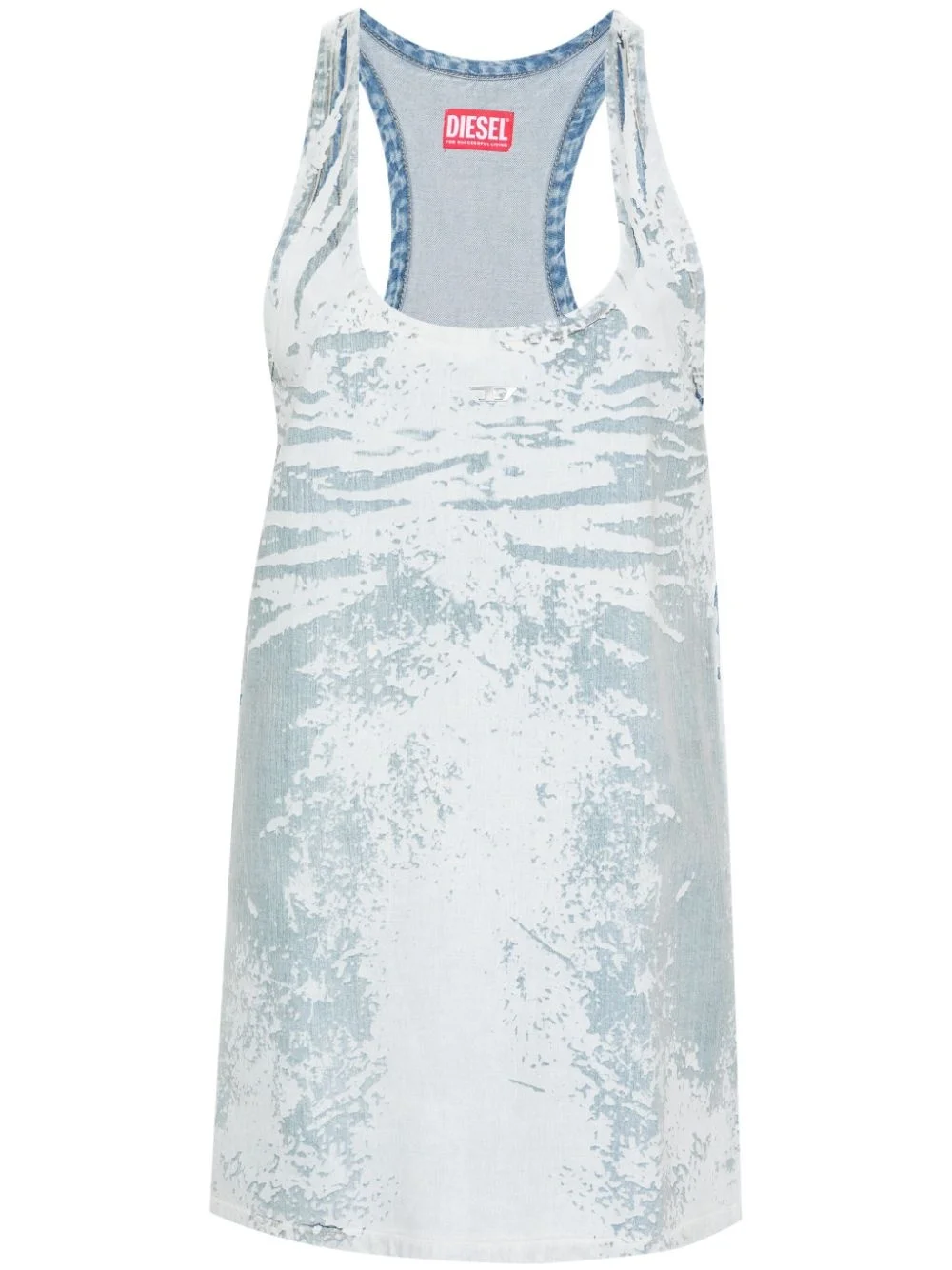 De-Purva denim dress Distinguished by its distressed effect and abstract print, Diesel's denim dress is cut to a sporty racerback silhouette. Highlights - Blue - Cotton - Denim - Coated finish - Distressed effect - Abstract pattern print - U-neck - Sleeveless - Silver-tone logo plaque - Racerback - Drawstring hem Imported Composition Lyocell 100%, Cotton 100% SIZE & FIT Model measurements Height 5 ft 10 in(1.77 m) Bust/Chest 31.88 in(81 cm) Hips 36.22 in(92 cm) Waist 24.01 in(61 cm) FittingInformation Designed for a relaxed fit, this piece allows for comfort and movement when worn Sturdy and hard-wearing, this denim piece offers no stretch This piece fits true to size – take your usual size Measurement HIPS 37.99 in(96.5 cm) LENGTH 32 in(81.3 cm) WAIST 35.98 in(91.4 cm) BUST 34.01 in(86.4 cm) Washing instructions Hand Wash