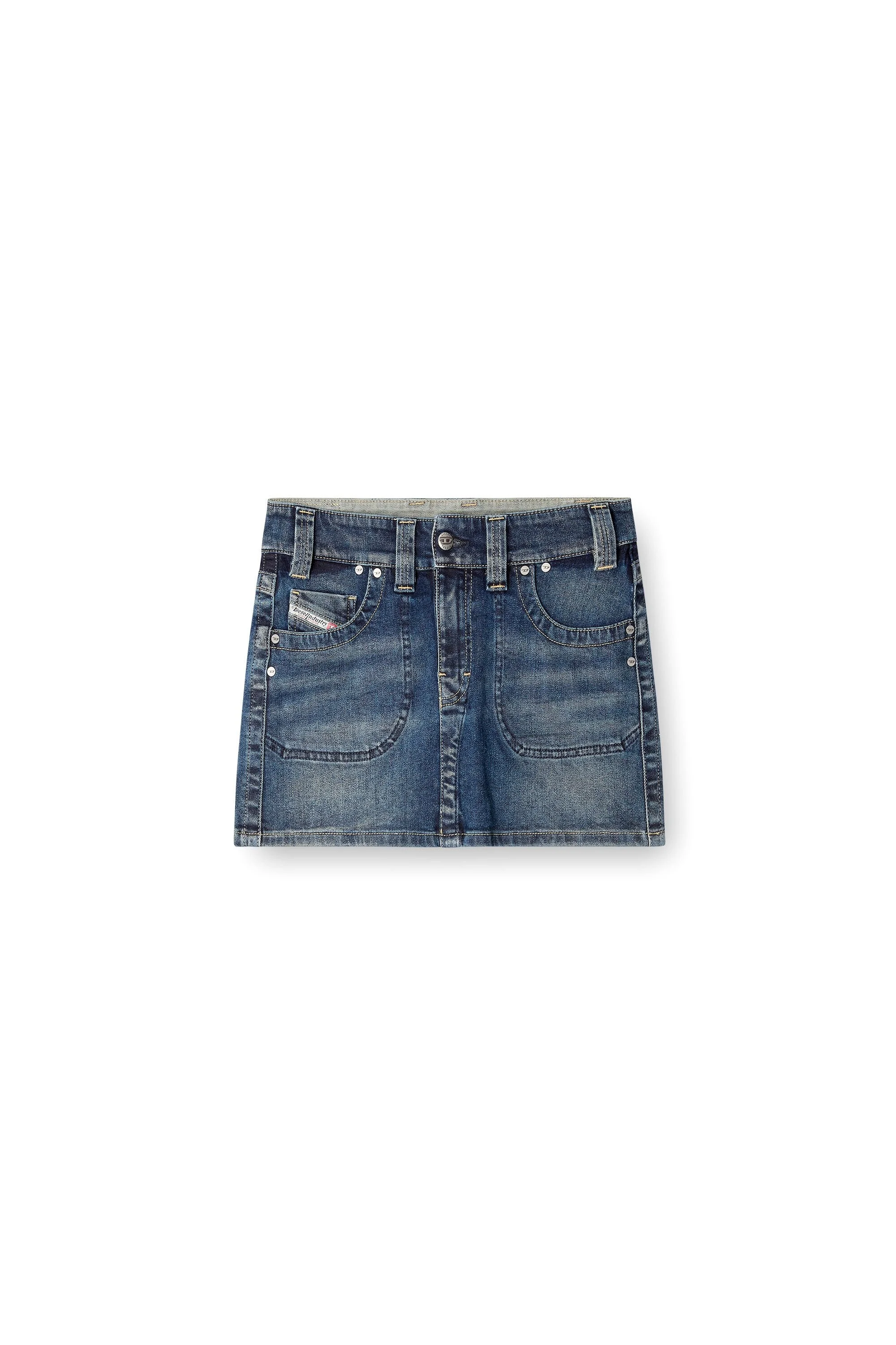 Product Description This short denim skirt is characterised by visible pocket seams and branded rivets. Finished with the iconic fifth pocket flag. The extra-wide double belt loops are a Diesel signature. Made using fully recycled cotton and elastane, this Diesel Rehab Denim is a unique fabric with circularity at its heart, treated with low impact processes. The medium blue wash features darker areas where the fabric is folded before treatment, revealing its original, darker colour. ID: A1770309J06 Size & Fit Model is wearing a size 26 and is 175 cm / 5'7'' Check the size chart to choose the correct size. Materials & Details Composition: 63%Cotton 34%Lyocell 2%Elastane-Spandex 1%Other Fibres Five-pocket style Belt loops Fly and button closure