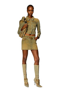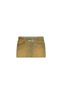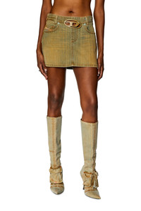 Model is wearing a size 26 and is 175 cm / 5'7'' Fits true to size, take your normal size. This short skirt from the Fall Winter 2023 Runway Show features a low waist, enriched with a cut-out oval D plaque — the iconic embellishment is inlaid to create an unexpected see-through effect. Seen during the FW 23 Runway Show, this comfort denim piece showcases a streaky dirt effect over a light blue base, enriched by tonal hardware details.