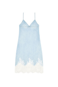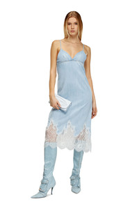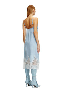 Model is wearing a size S and is 175 cm / 5'7'' Fits true to size, take your normal size. This women's dress hits below the knee, with a V neckline and slim shoulder straps. It's crafted from light blue TENCEL™ Lyocell denim that's soft and stretchy, enriched by sheer white lace inlays at the hem. A small metal Oval D decorates the back, just under the right strap.