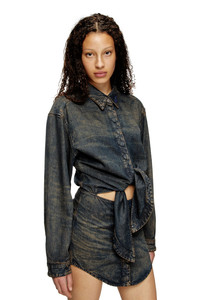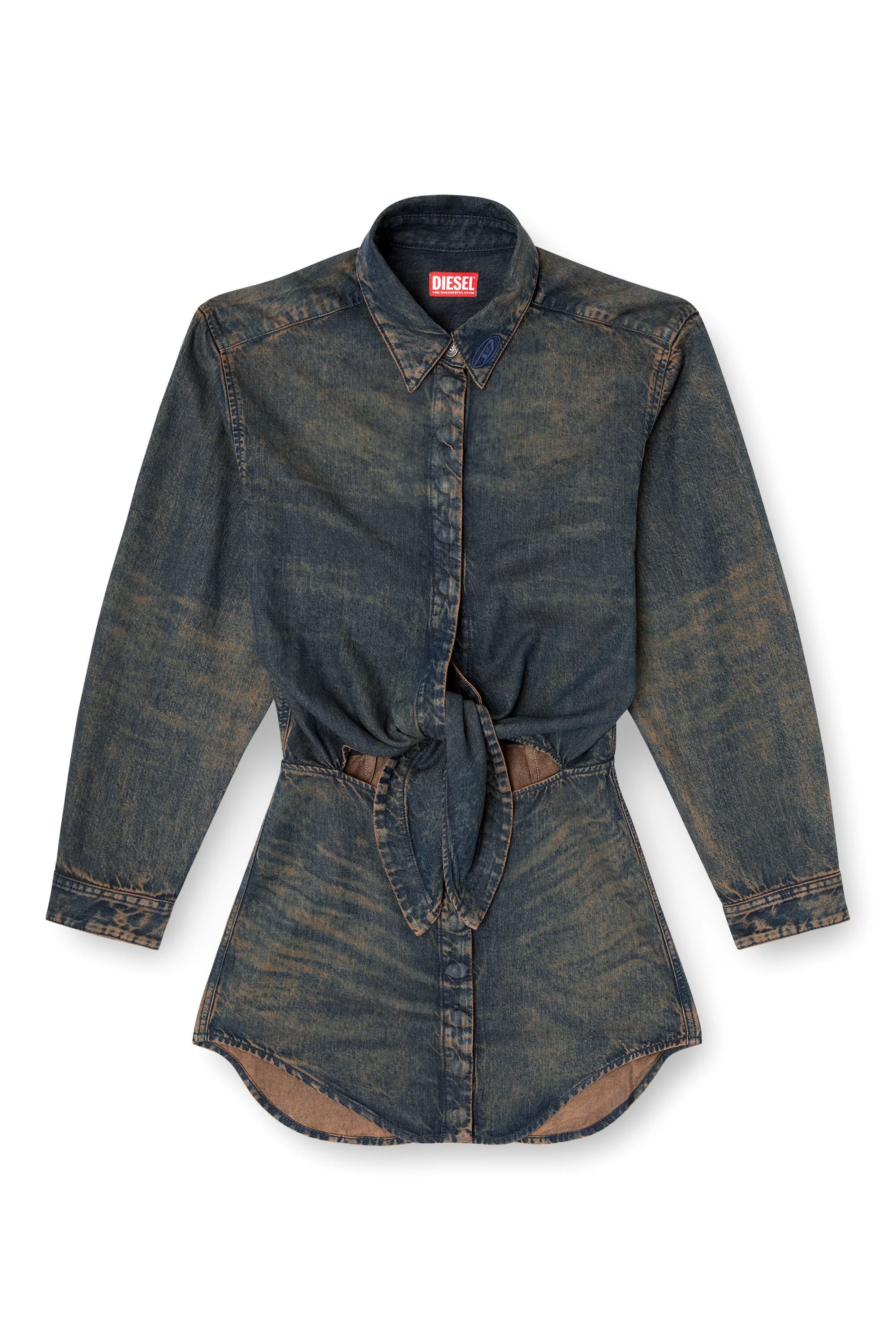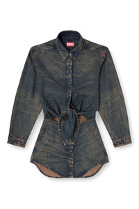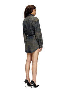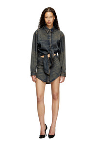 Product Description This women's dress showcases the new season's mood and distinctive style codes. Designed to resemble a shirt worn over a skirt, it features a classic collar with an embossed Oval D, dropped shoulders and a knot motif on the waist. The skirt has hidden buttons through the front and a slim silhouette with curved sides that nods to Diesel's Fall Winter 25 Runway looks. It's crafted from black lightweight TENCEL™ Lyocell denim with a fluid texture, enriched with lasered whiskers and lived-in effects. A spray treatment creates a dirt-effect finish in sandy tones. ID: A19018068TE Size & Fit Model is wearing a size S and is 175 cm / 5'7'' Check the size chart to choose the correct size. Materials & Details Composition: 100%Lyocell Hidden button closure on top and skirt Buttoned cuffs