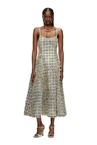 Product Description This women's long dress channels a haute-couture feeling, featuring a strappy top and a full, flowing skirt. Diesel's unique expertise in deconstructing denim lends this Fall Winter 25 Runway style an ethereal touch: the technical denim features a houndstooth jacquard weave, while the signature devore technique reveals the inner construction of the fabric. Floating threads add texture for an inside-out effect. ID: A21622007CC Size & Fit Model is wearing a size S and is 175 cm / 5'7'' Check the size chart to choose the correct size. Materials & Details Composition: 83%Cotton 17%Polyamide-Nylon Fall Winter 2025 Runway Show Hidden closure Lined