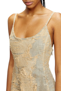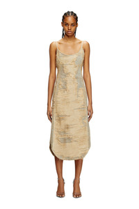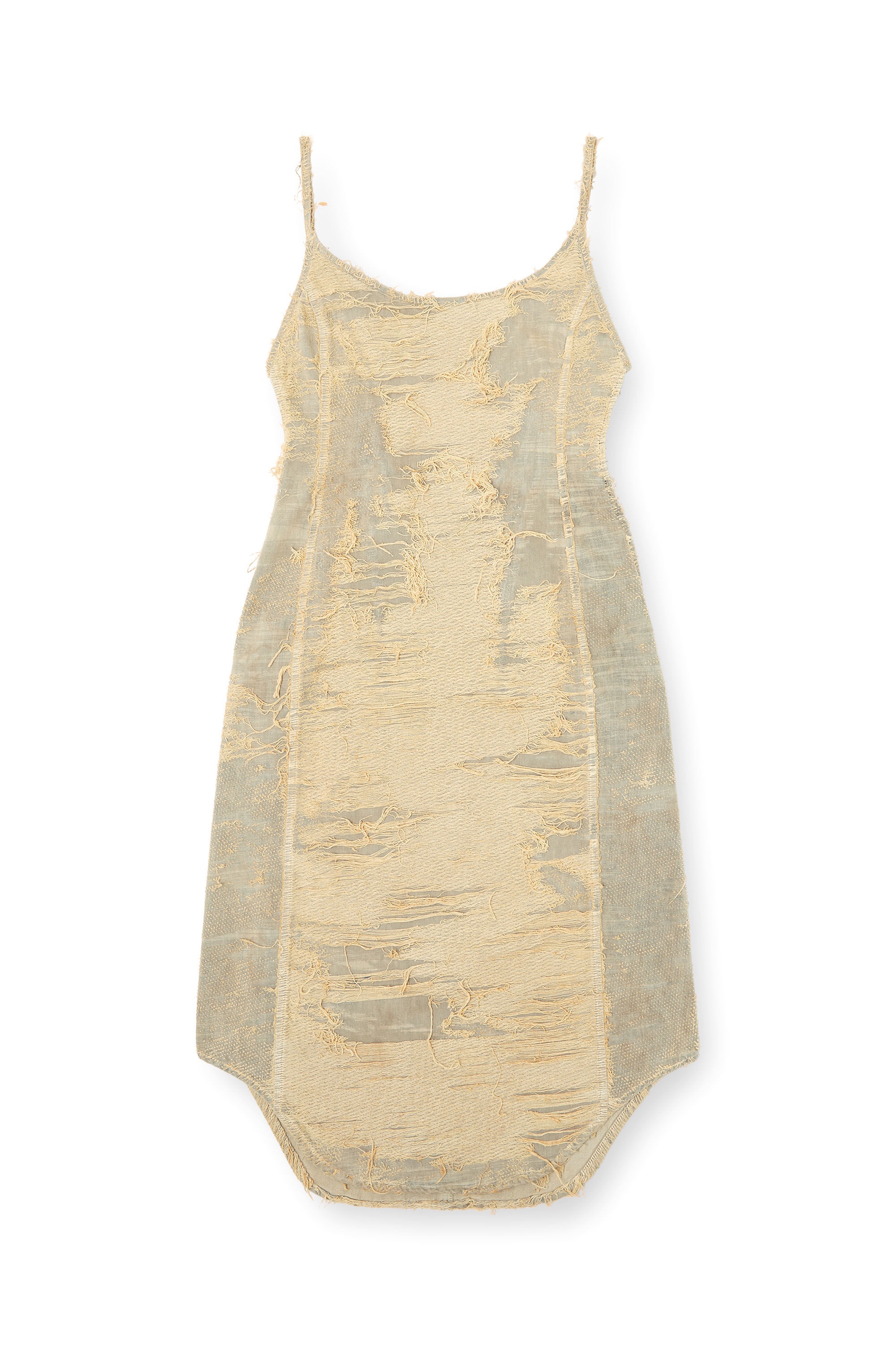 Product Description With a daring open back, curved hems and strappy silhuette, this women's midi dress is a signature Runway look. An example of Diesel's artisanal expertise and innovative approach to denim, this Spring Summer 2025 Runway wash channels an exclusive, intentionally distressed aesthetic. The organic-cotton denim is made from a double loom jacquard weave that creates a unique net of floating threads. The garment is bleach-washed, overdyed in shades of beige, and laser-treated to highlight its distinctive craftsmanship, inspired by the concept of beauty in waste. ID: A18166007AZ Size & Fit Model is wearing a size S and is 175 cm / 5'7'' Check the size chart to choose the correct size. Materials & Details Composition: 100%Cotton Spring Summer 2025 Runway Show
