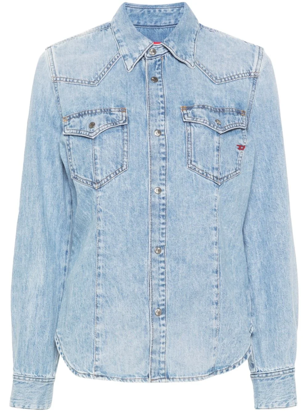 De-Waves denim shirt Highlights - Blue - Cotton - Washed denim - Embroidered logo at the chest - Logo-engraved silver-tone hardware - Pleat detailing at the sleeves - Classic collar - Long sleeves - Buttoned cuffs - Two chest patch pockets - Curved hem - Unlined - Front press-stud fastening Imported Composition Cotton 100% SIZE & FIT Model measurements Height 5 ft 11 in(1.8 m) Bust/Chest 33.07 in(84 cm) Hips 37.4 in(95 cm) Waist 25.19 in(64 cm) FittingInformation Designed to be unstructured, offering a loose fit throughout Sturdy and hard-wearing, this denim piece offers no stretch This piece fits true to size – take your usual size