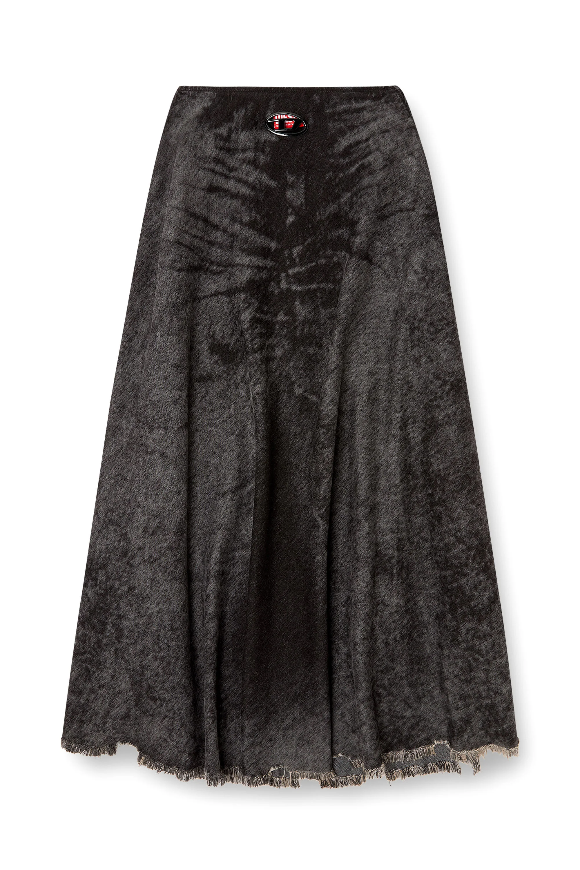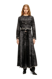 Product Description The metallic Oval D in the centre of this women's long skirt has become part of Diesel's style codes. Heavily frayed hems complete the Fall Winter 2025 Runway look. Crafted from a blend of cotton and hemp, this dark grey fix denim is stone washed and treated with bold lasered artwork – iconic graphic motifs that lend an extreme, instantly recognisable touch. The result is a distinctive Runway wash that showcases Diesel's creativity and craftsmanship. ID: A21505007DB Size & Fit Model is wearing a size 26 and is 175 cm / 5'7'' Check the size chart to choose the correct size. Materials & Details Composition: 80%Cotton 20%True Hemp Fall Winter 2025 Runway Show Side zip closure Unlined