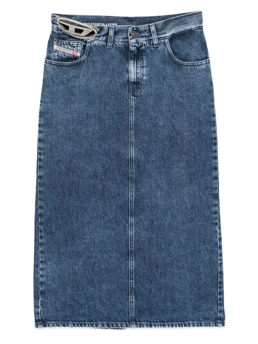 De-Skye-S1 midi skirt Highlights - Blue - Denim - Logo hardware - Front pockets - Rear pockets - Midi skirt Imported Composition Cotton 82%, Lyocell 18% Washing instructions Hand Wash