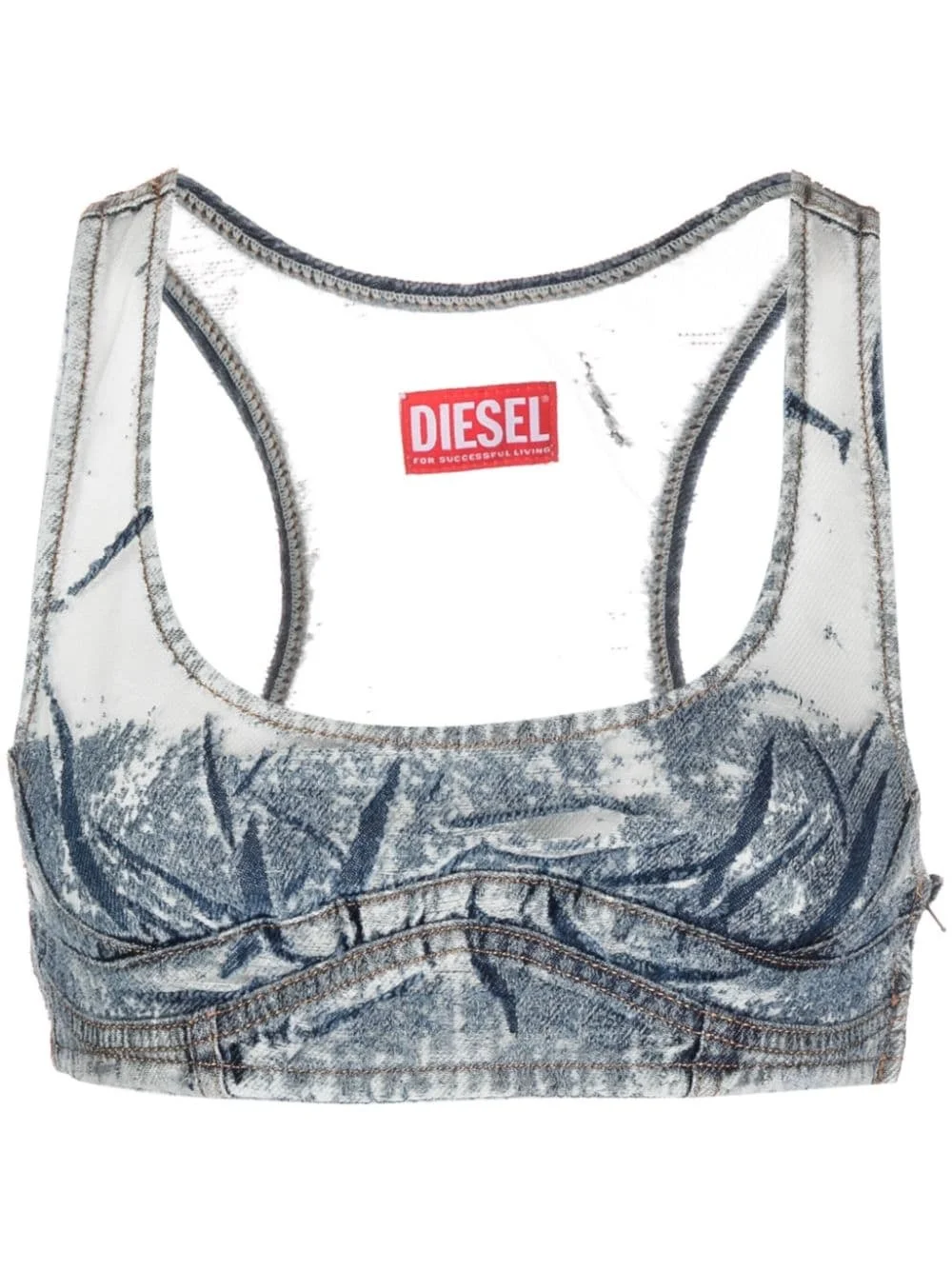 denim-patchwork mesh top Highlights - Blue - Cotton blend - Denim patchwork design - Semi-sheer construction - Mesh panelling - Racerback - Sleeveless - Scoop neck - Straight hem - Cropped - Internal logo patch Imported Composition Cotton 78%, Nylon 22% SIZE & FIT Model measurements Height 5 ft 10 in(1.77 m) Bust/Chest 31.88 in(81 cm) Hips 36.22 in(92 cm) Waist 24.01 in(61 cm) FittingInformation Designed for a close fit throughout Sturdy and hard-wearing, this denim piece offers no stretch This piece fits true to size – take your usual size Washing instructions Hand Wash