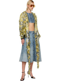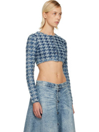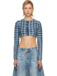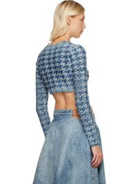Knit cotton cardigan. · Jacquard houndstooth pattern throughout · Frayed edge at crewneck · Button closure · Cropped hem Supplier color: Blue 100% cotton. Made in Italy 252001F095002