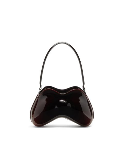 Product Description A three-dimensional take on the coveted Play, this new iteration of the iconic controller-shaped bag is cheekily dubbed the 'Double D'. Provocative and suggestively buxom, it has a soft-touch rigid construction in ultra glossy pull-up PU: where the material is stretched over the roundness of the bag, it creates a degrade fade, translating into an incredible depth of colour. The front panel is decorated with a metal Oval D rivet. The organic shape is ultra-comfortable to carry under the arm and has a fixed shoulder strap. ID: X10327P8008 Materials & Details Composition: 100%Polyurethane Rounded top handle Zip closureInternal zip pocket