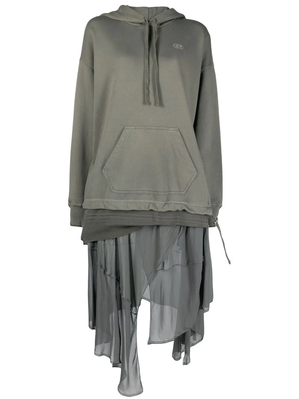 drawstring hooded dress khaki cotton logo patch at the chest asymmetric design drawstring hood long sleeves fitted-cuff sleeves Imported Composition Cotton 100%, Viscose 100% SIZE & FIT Model measurements Height 5 ft 11 in(1.8 m) Bust/Chest 33.07 in(84 cm) Hips 37.4 in(95 cm) Waist 25.19 in(64 cm) FittingInformation This piece fits true to size. We recommend you get your regular size Cut for a loose fit Made with a mid-weight fabric Washing instructions Machine Wash