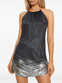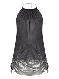 halterneck ruched dress Highlights - Dark grey - Metallic effect - Chain detailing - Ruched detailing - Drawstring fastening - Sleeveless Imported Composition Acetate 92%, Elastane 8% Washing instructions Read Manufacturer Guidelines