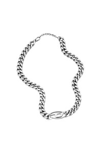 PRODUCT ID: DX143300DJW - Composition: Steel - Material: Stainless Steel - Closure: Lobster Clasp - Finish: Brushed - Measurements: L 170MM+15MM x W 17.5MM x H 9MM Diesel's choker necklace features stainless steel and a lobster clasp closure.